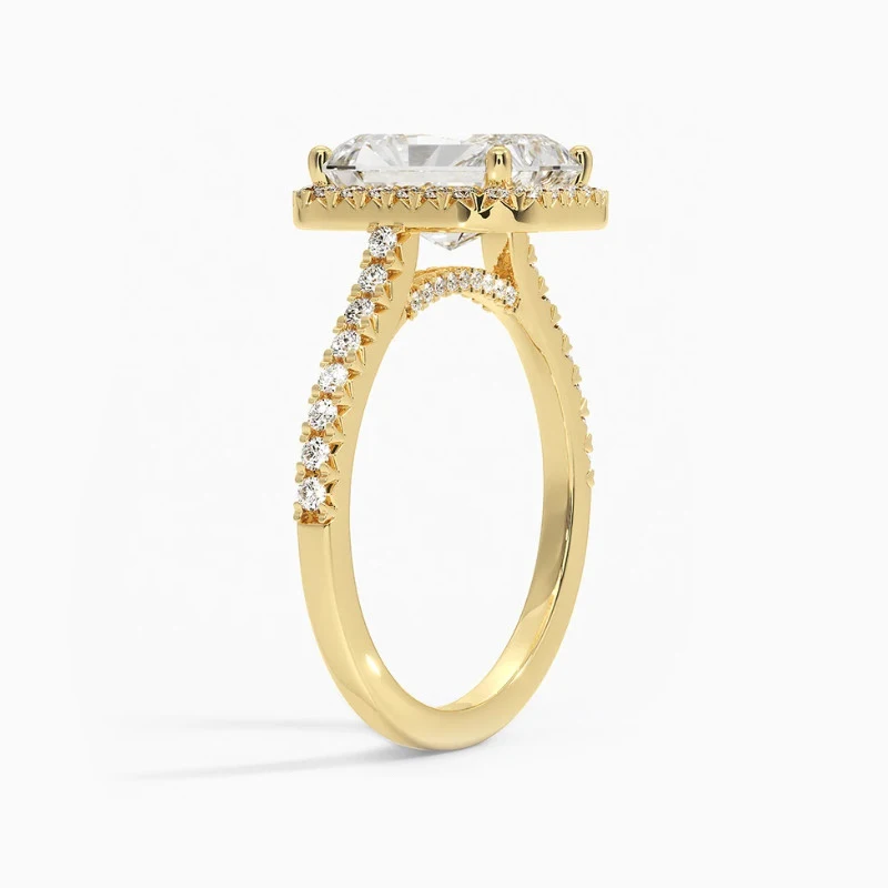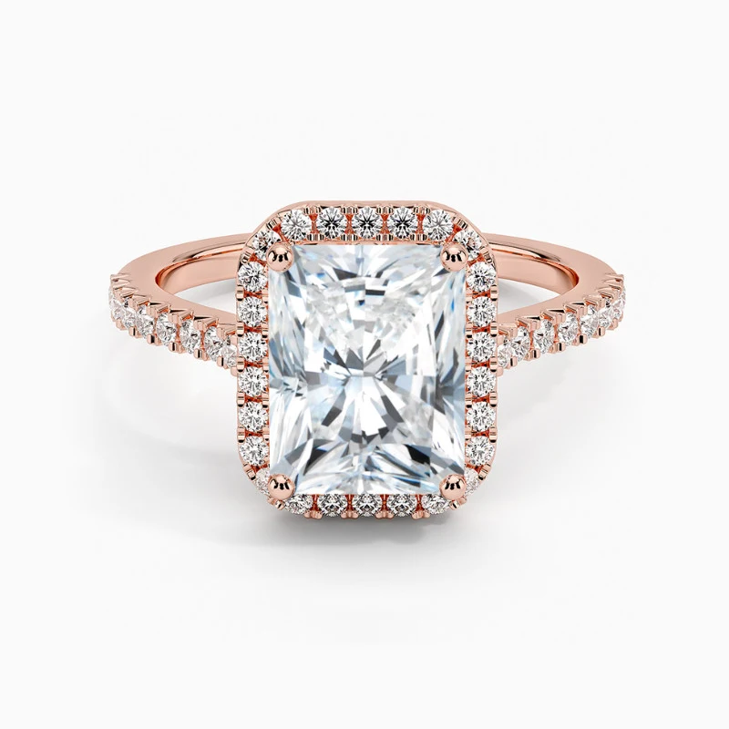 1ct Radiant Cut 14K Solid Gold Halo Ring DE VS1 VVS Excellent Cut IGI Certified Lab Grown Diamond Bridal Wedding Band Ring
